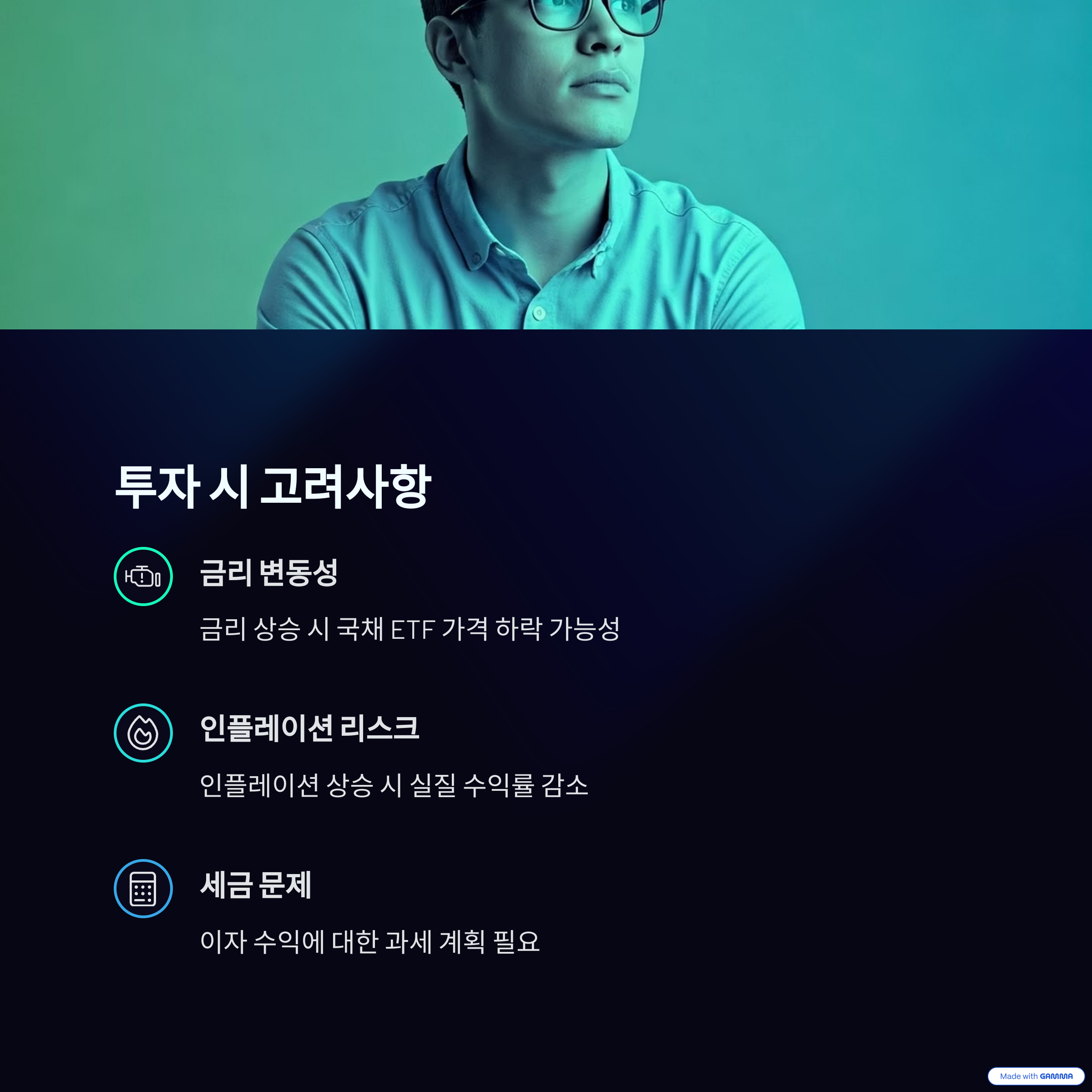 - 인플레이션 리스크: 고정 수익을 제공하는 국채 ETF는 인플레이션 상승 시 실질 수익률이 감소할 수 있습니다.
