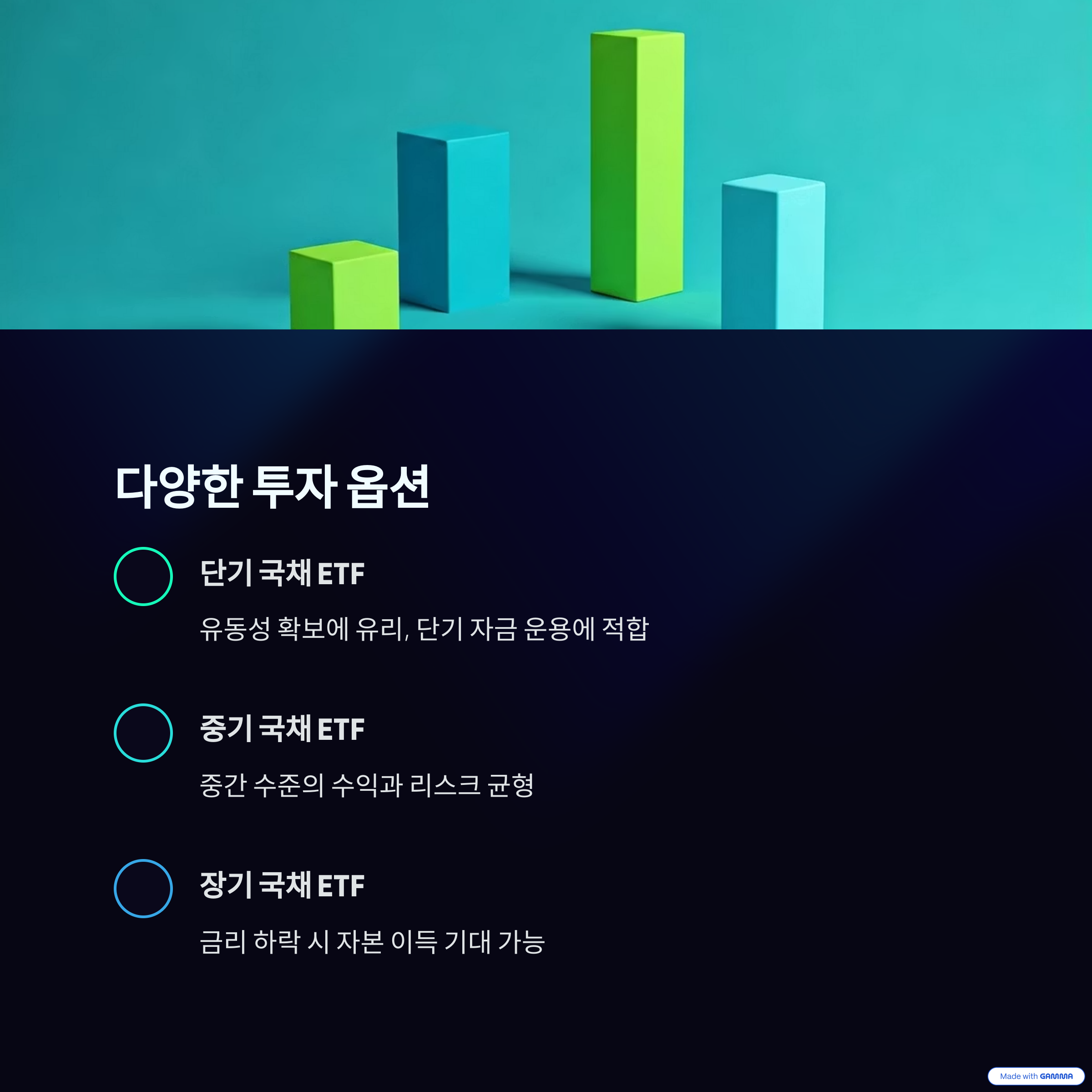 국채 ETF는 단기, 중기, 장기 등 다양한 만기 구조를 제공하여