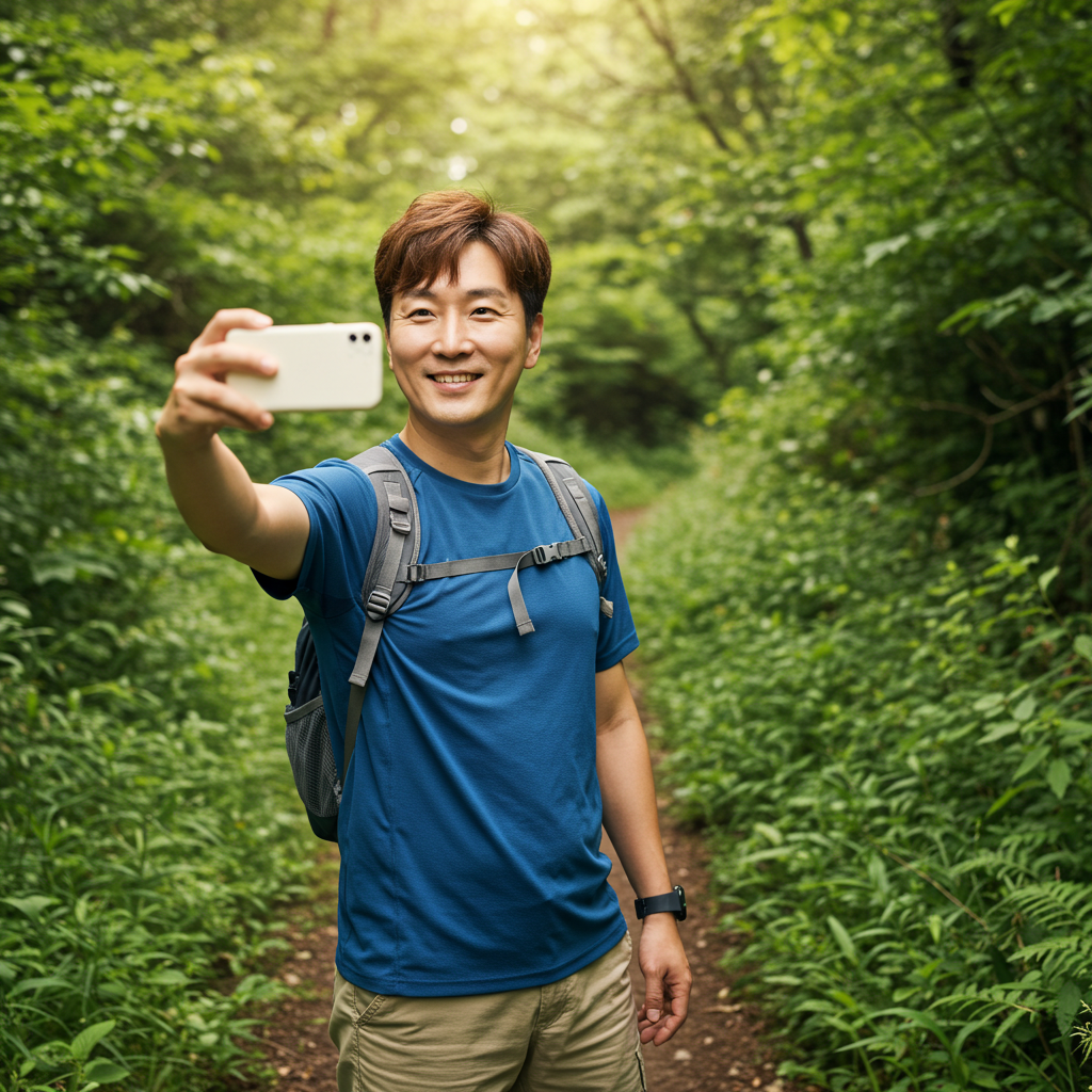 자연 속에서 가볍게 산책하며 찍은 밝은 표정의 셀카 한 장, 건강해진 나를 기록해보는 건 어떨까요?