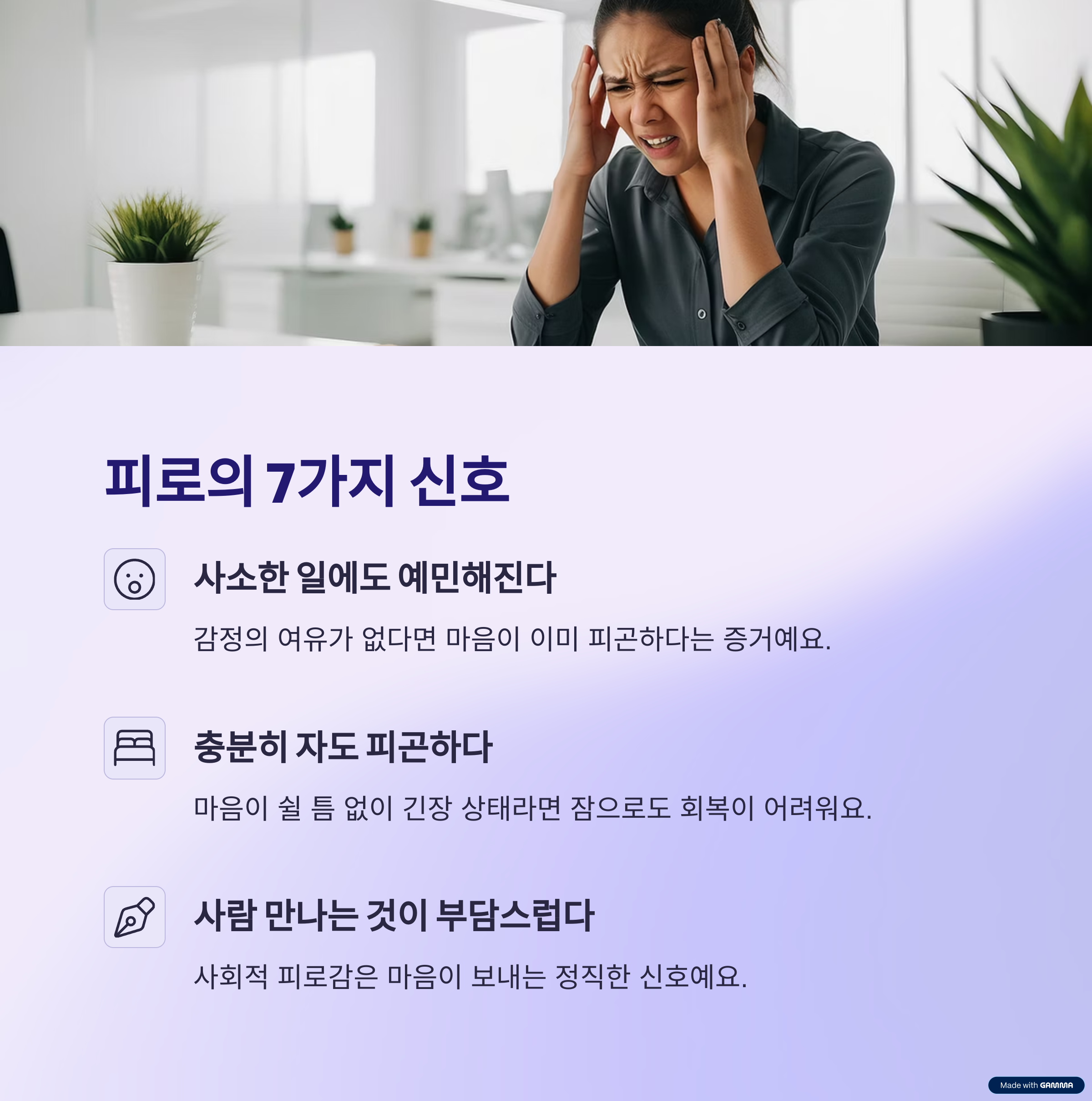피로가 감정까지 잠식하고 있는 신호일 수 있어요.