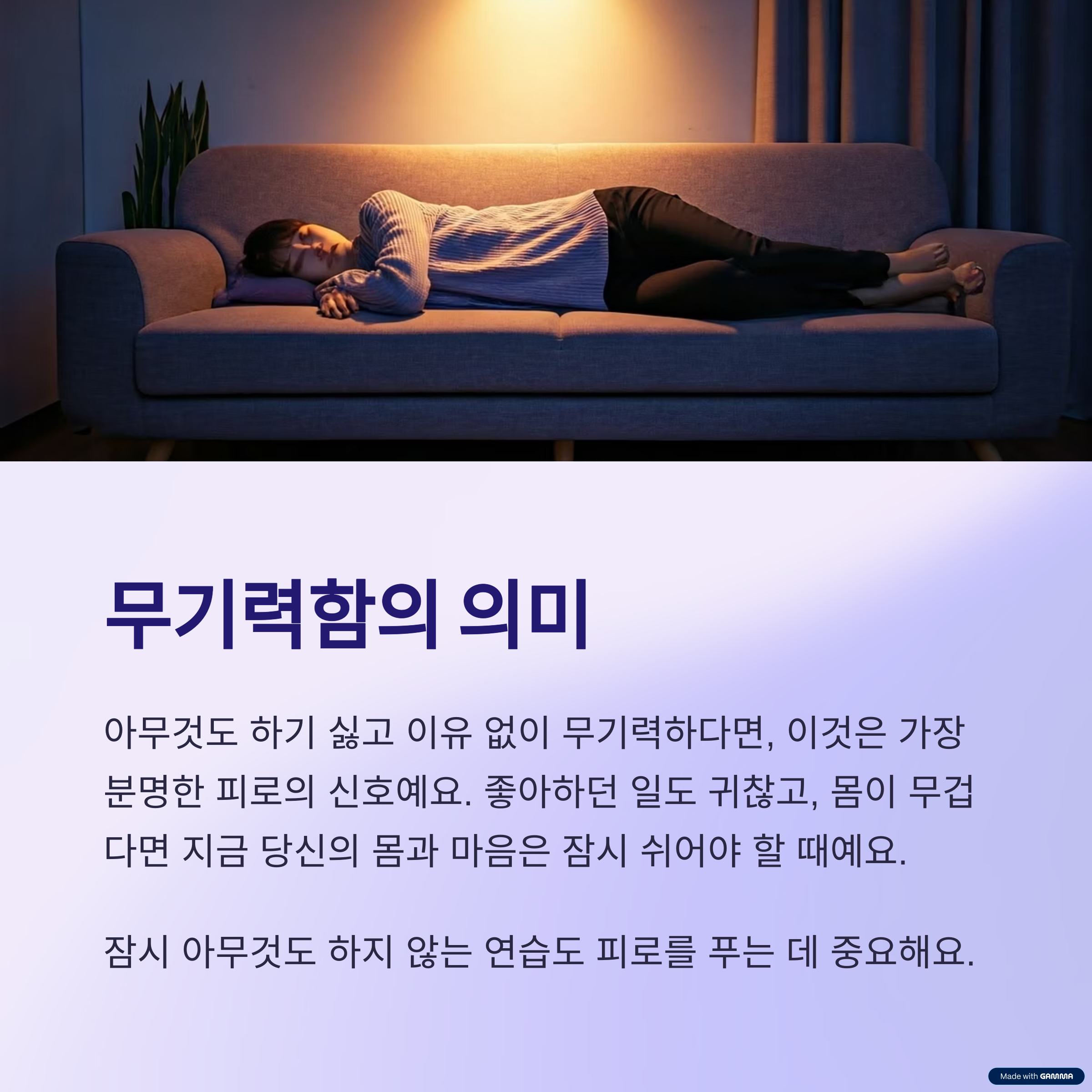 아무것도 하지 않아도 몸이 무겁다면 지금 당신의 몸과 마음은 잠시 쉬어야 할 때예요.