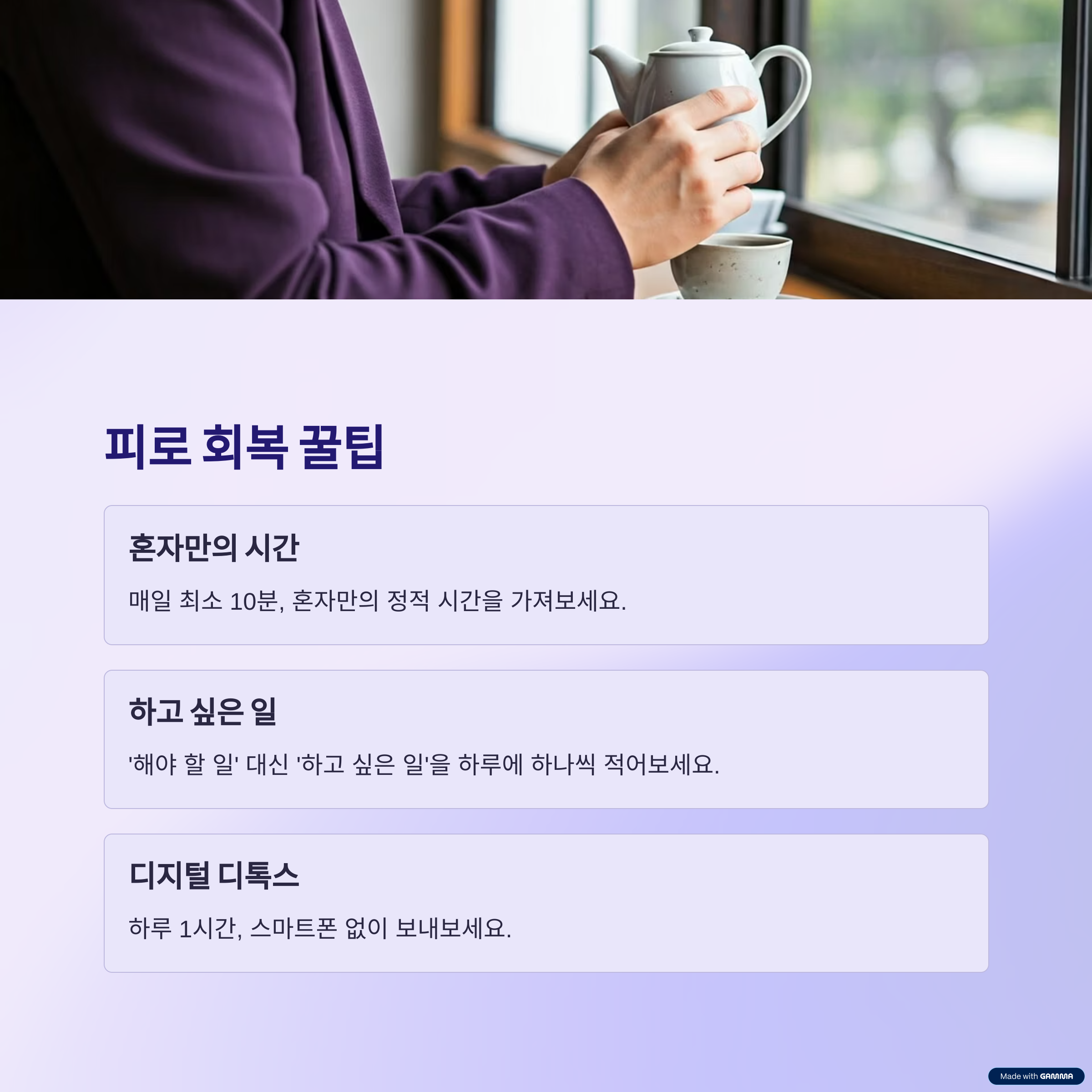 🧘♀️ 결론: 피로한 나에게 보내는 작은 위로