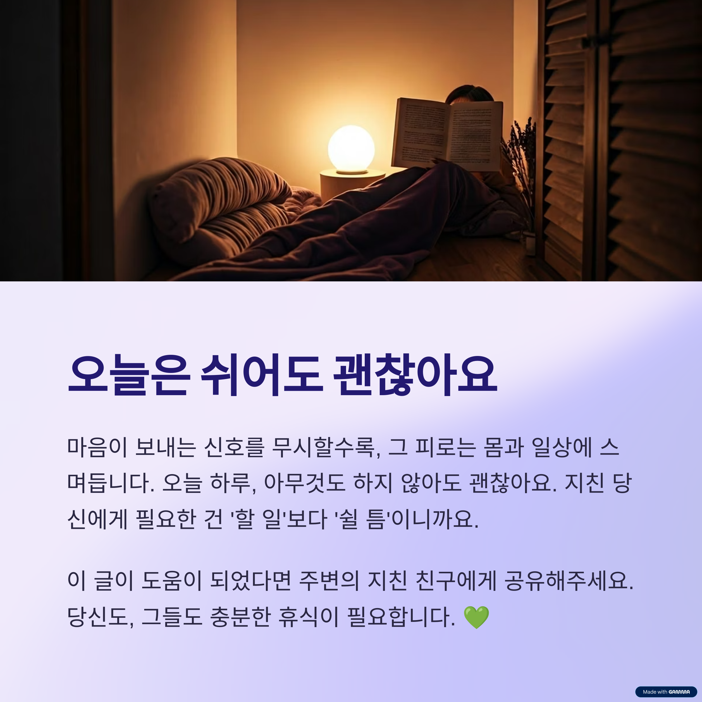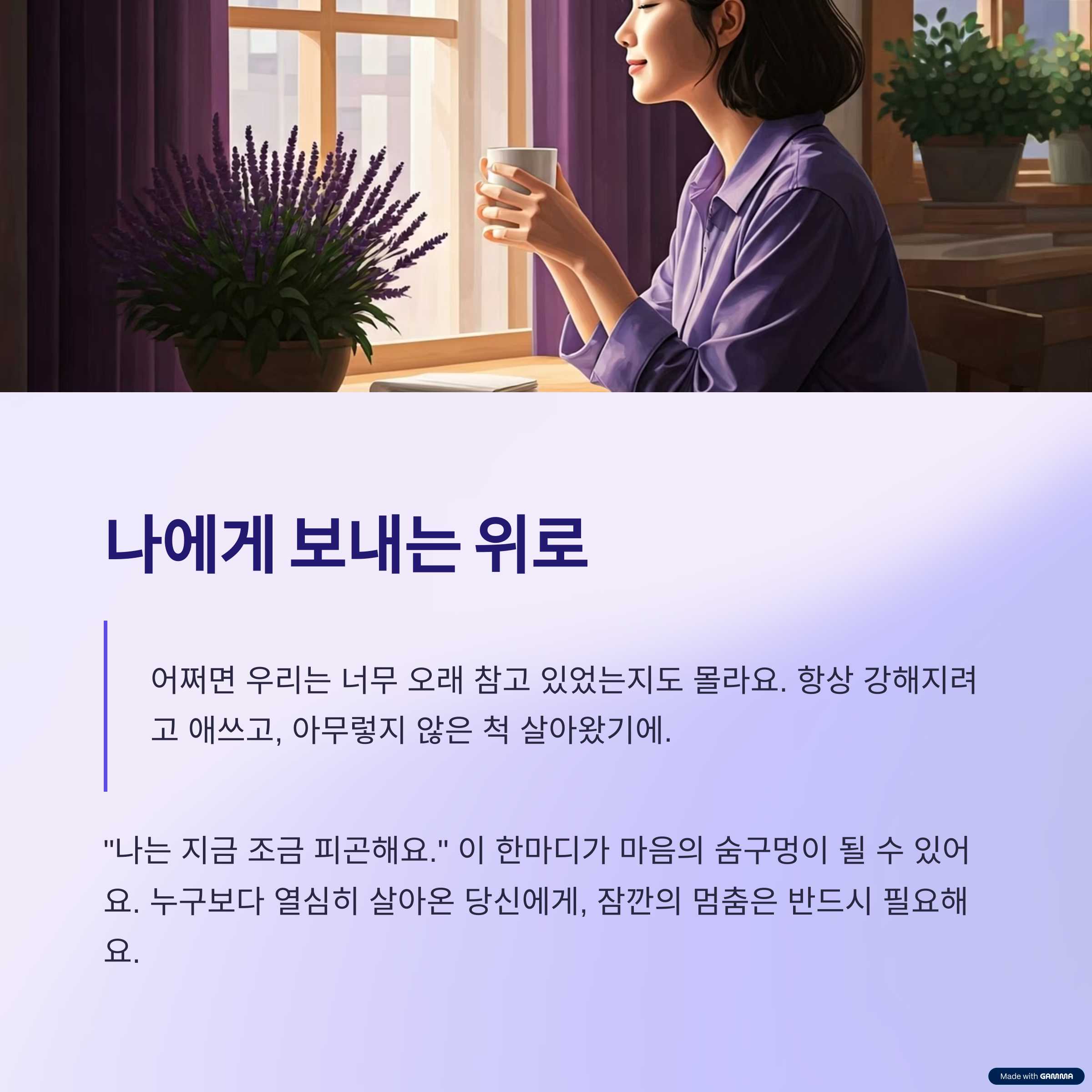 지친 당신에게 필요한 건 ‘할 일’보다 ‘쉴 틈’이니까요.