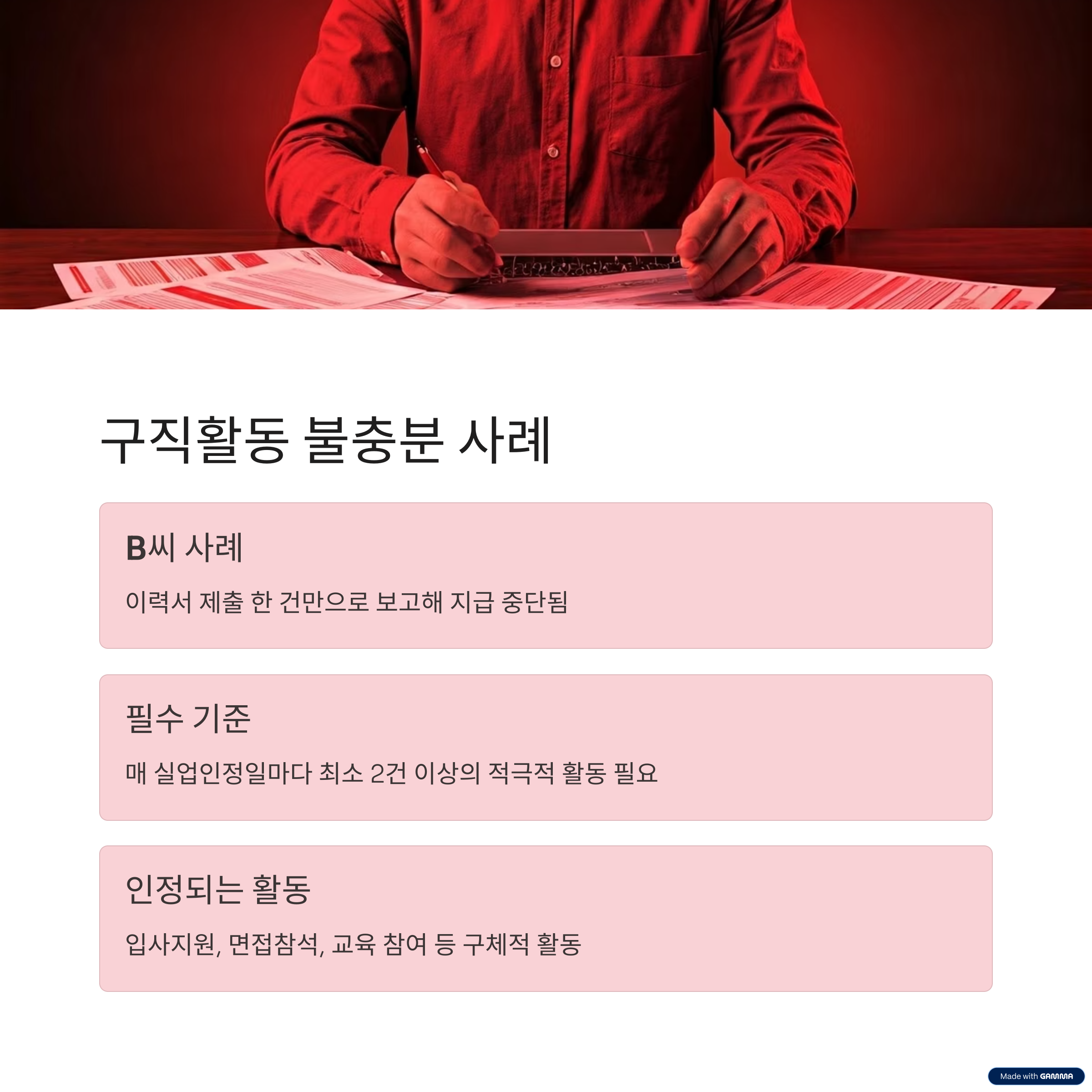 온라인 지원, 채용 상담, 직업훈련 등은 구직활동으로 인정되지만 단순 검색은 불인정됩니다.