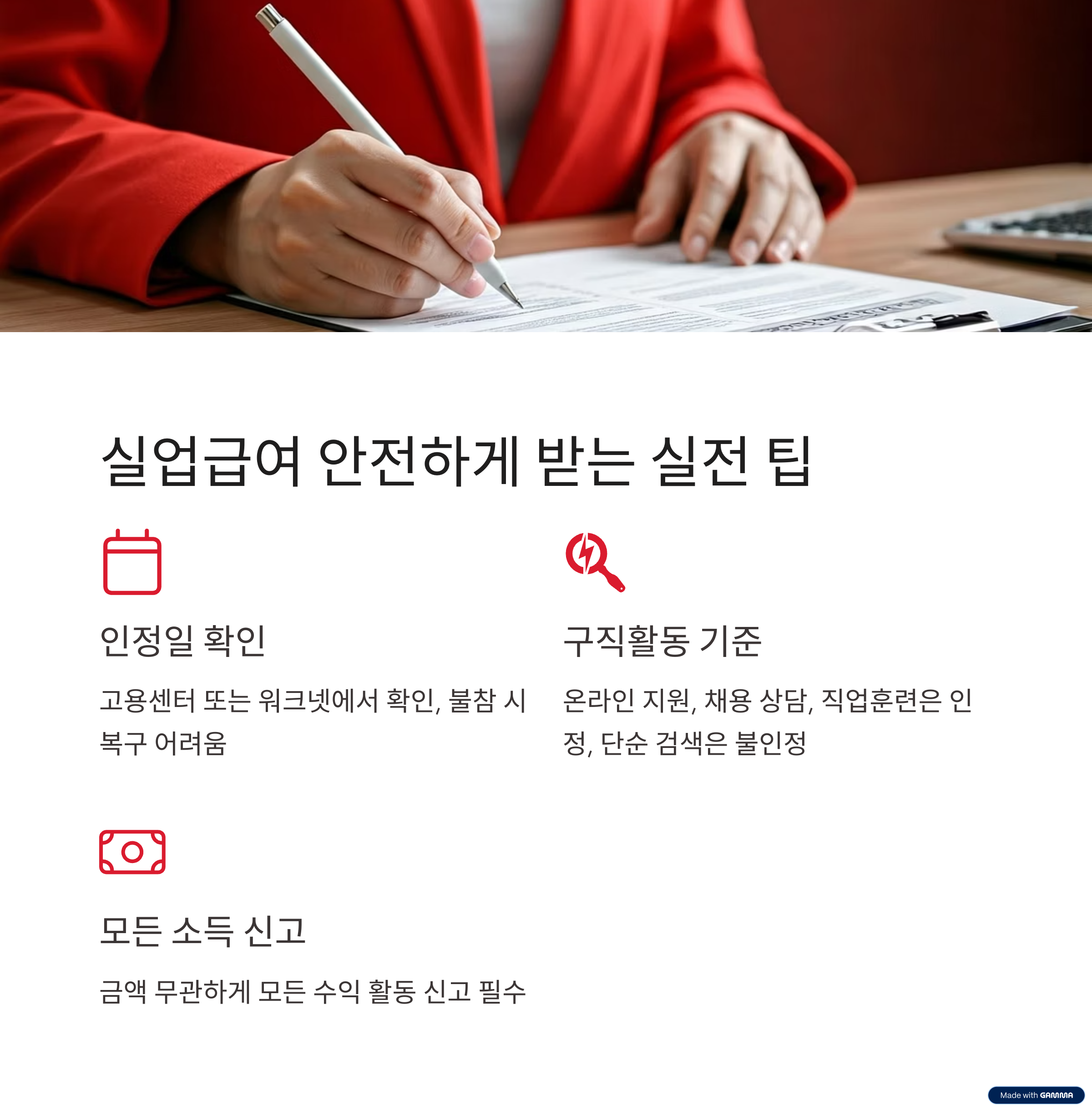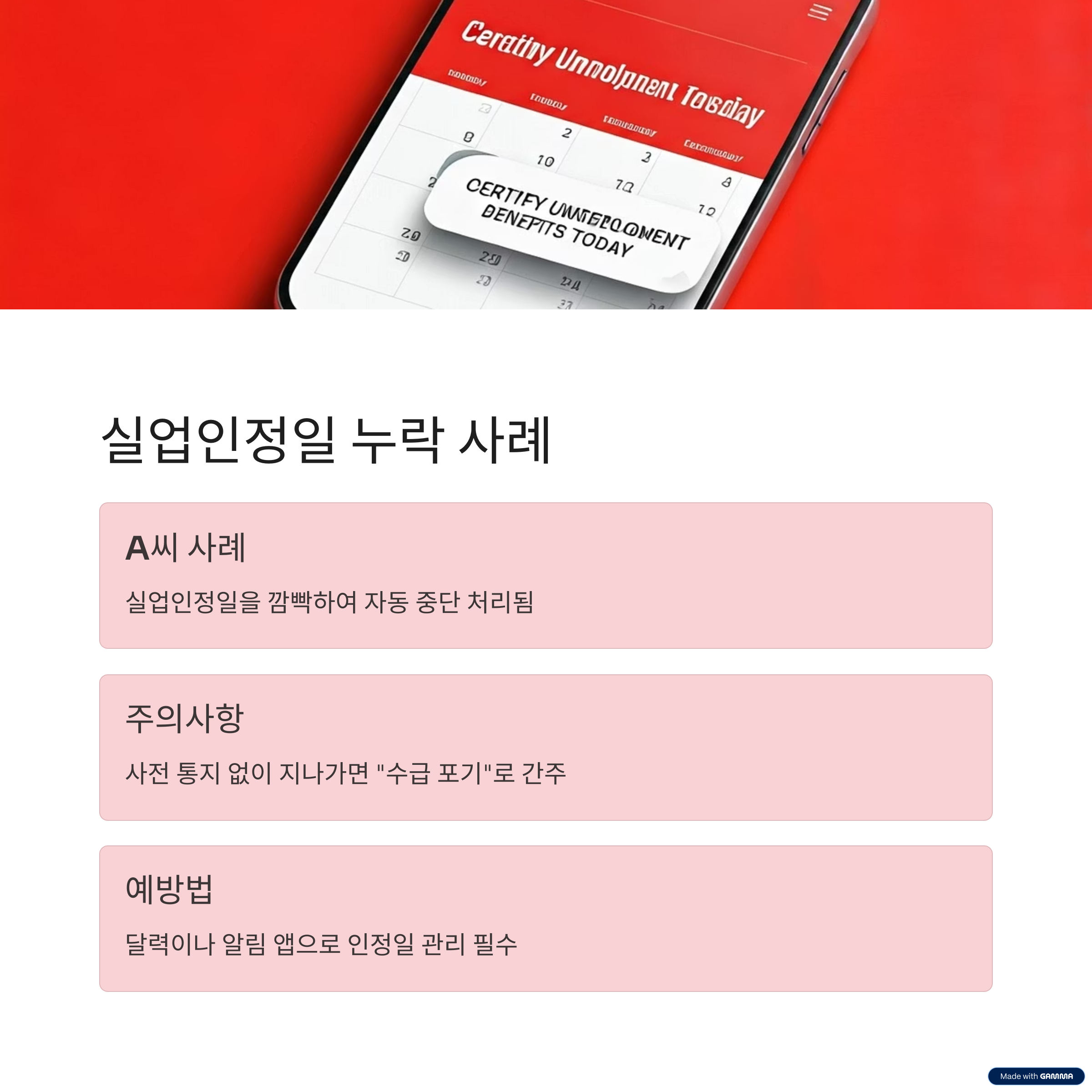 실업인정일은 사전 통지 없이 지나가면 실업 상태를 인정받을 수 없습니다. 고의가 아니더라도 “수급 포기”로 간주될 수 있으므로, 달력이나 알림 앱을 활용한 관리가 필수입니다.