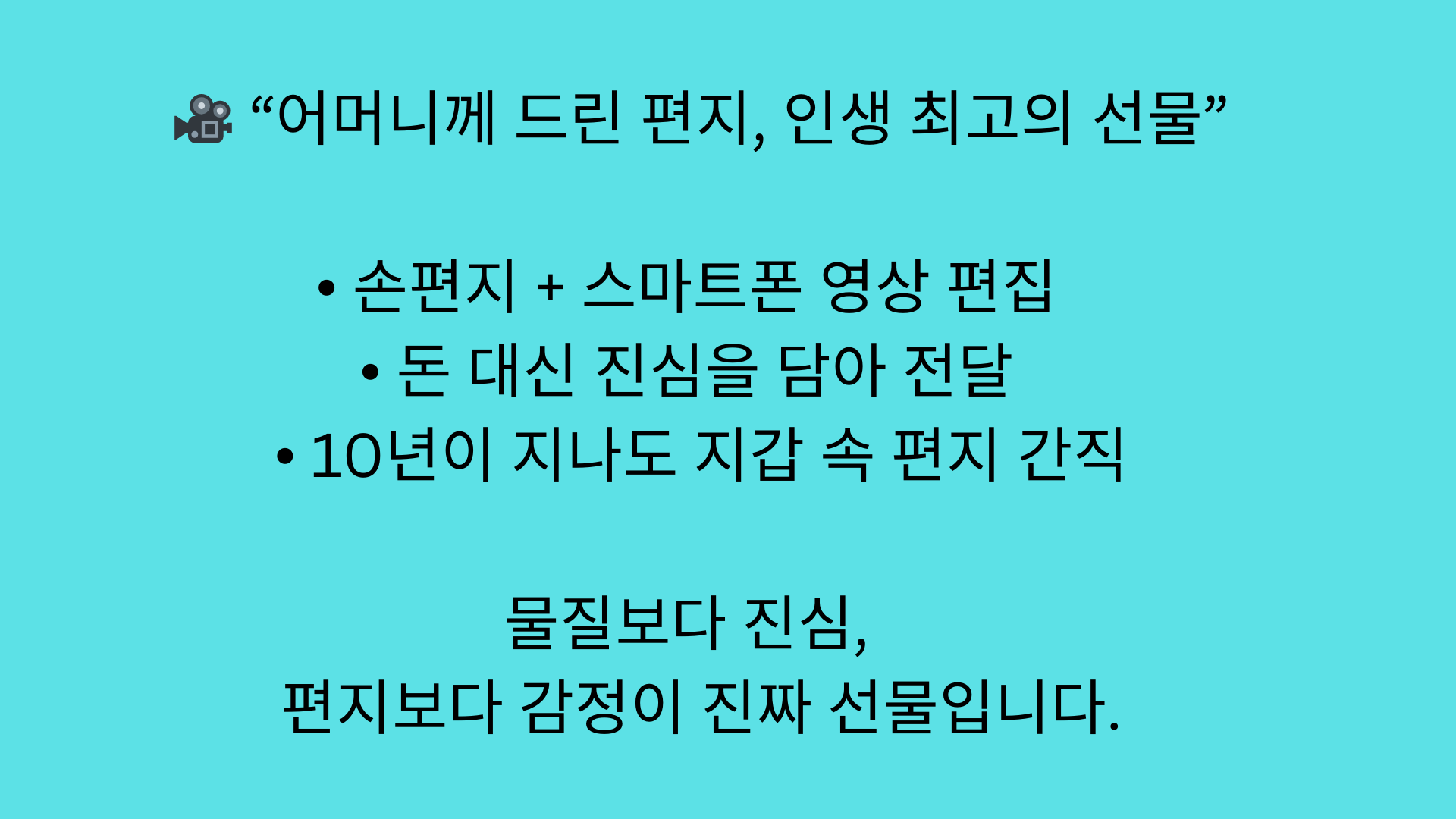 스토리텔링 예시: 직접 만든 손 편지 + 영상 편집으로 감동 두 배