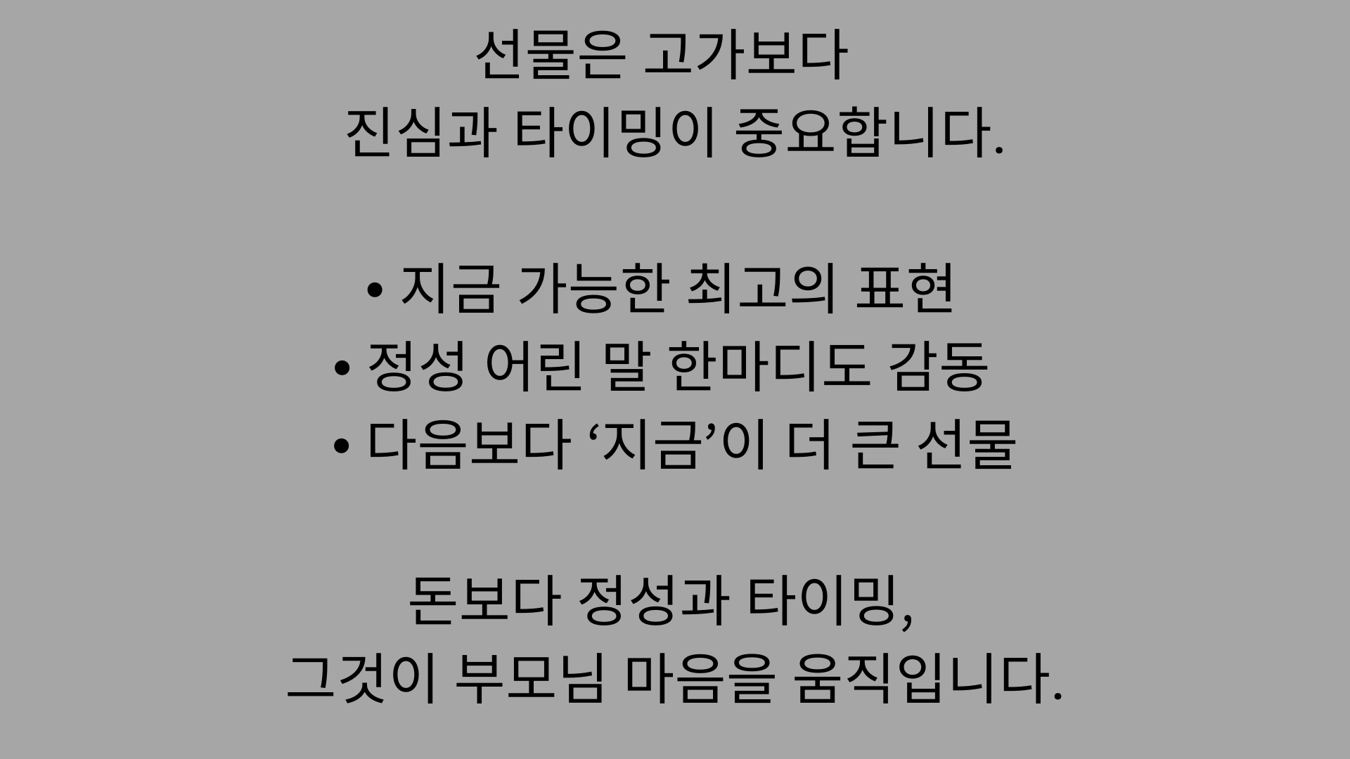 "돈보다 정성과 타이밍, 그것이 부모님 마음을 움직입니다"