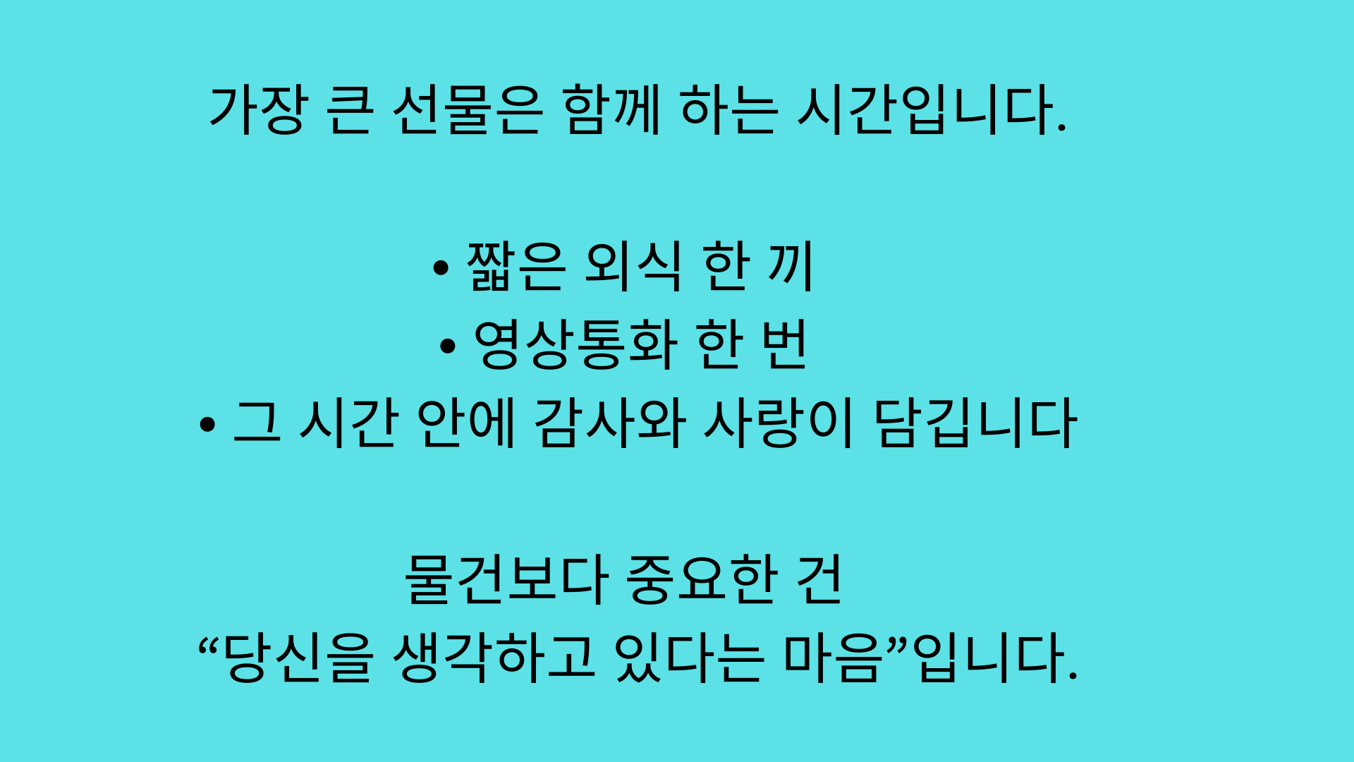 “함께 하는 시간”은 어떤 물건보다 큰 선물입니다 - 가까이 계신다면 소박한 외식, 멀다면 영상통화라도 꼭 하세요