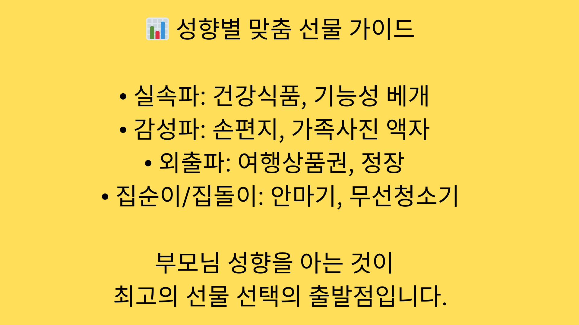 부모님의 성향을 파악하는 것이 최고의 선물을 고르는 시작점입니다
