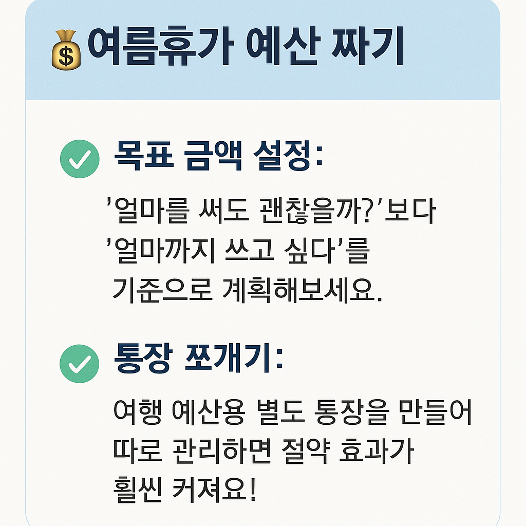 ✔️ 통장 쪼개기: 여행 예산용 별도 통장을 만들어 따로 관리하면 절약 효과가 훨씬 커져요!