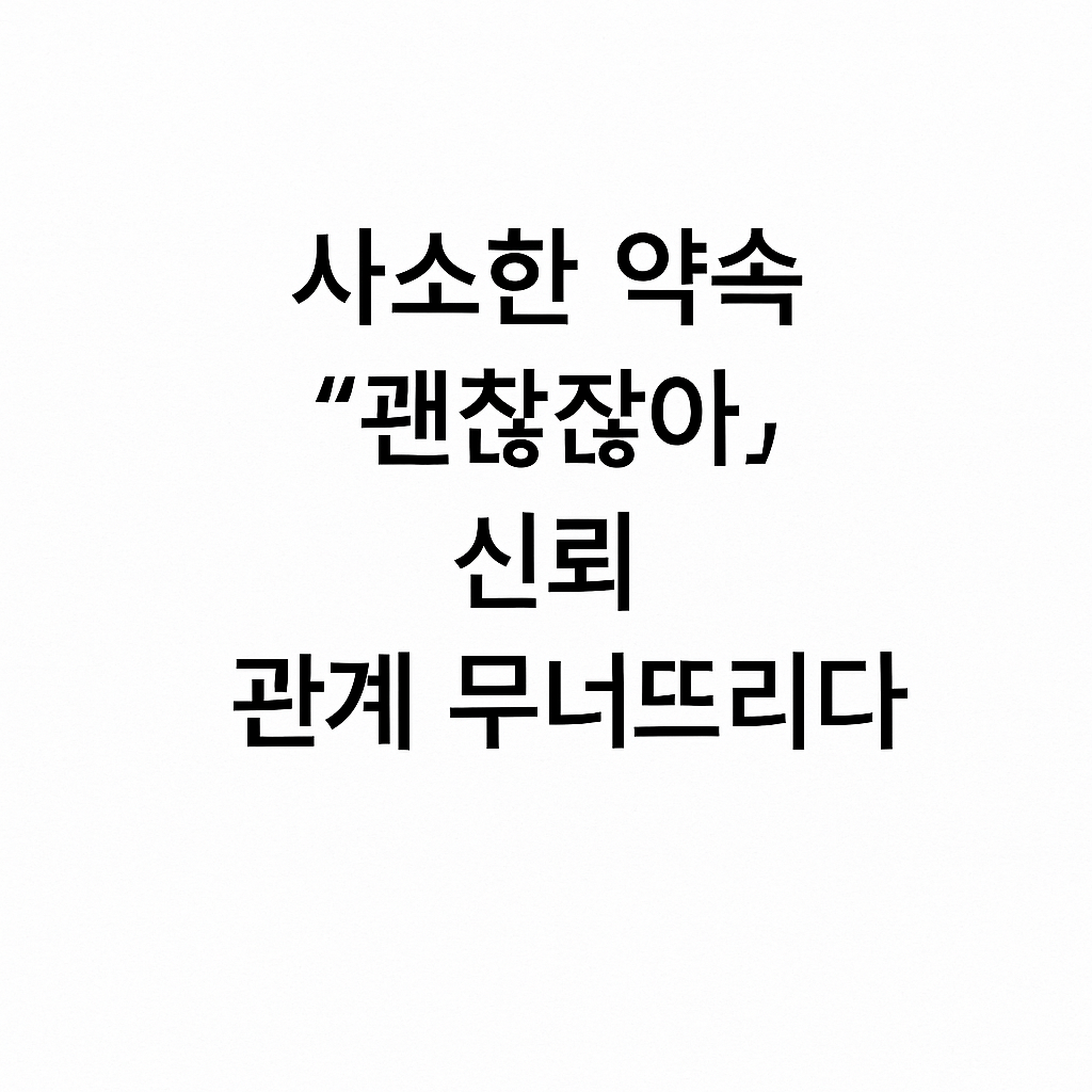 “그 정도는 괜찮잖아.”라는 말은 늘 멀어지는 쪽에서 먼저 나옵니다. 사소한 약속이 쌓여 신뢰를 만들고, 사소한 실망이 쌓여 관계를 무너뜨리죠. 한 번, 두 번 대충 넘긴 일들은 결국 ‘그 사람은 그런 사람이야’라는 인식으로 굳어집니다.
