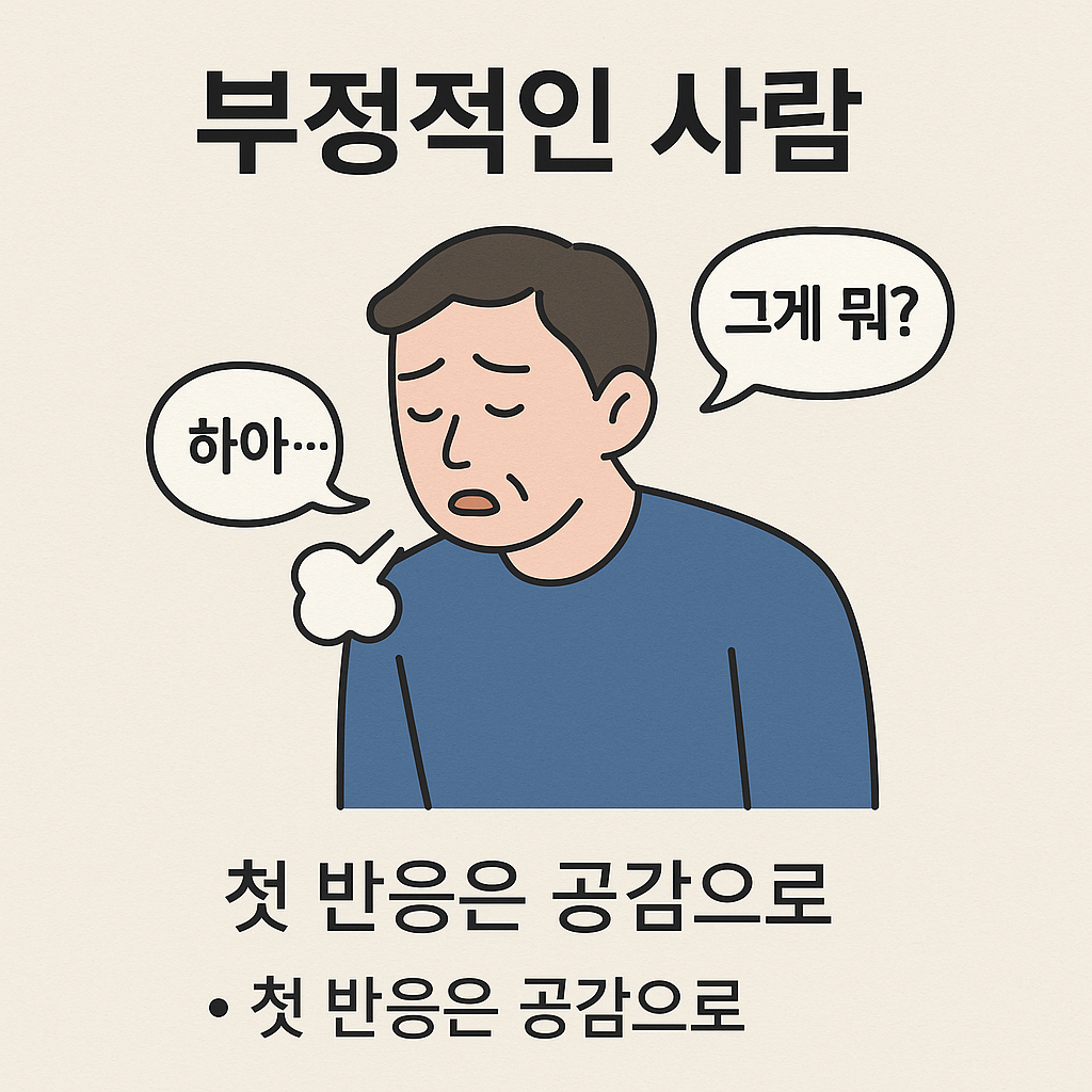 대화할 때마다 무겁고, 부정적인 반응이 먼저 돌아온다면 상대는 점점 조심스러워집니다. “그래서?”, “그게 뭐?” 같은 반응이나 자주 터져 나오는 한숨은 관계의 온도를 서서히 식히게 만듭니다.
