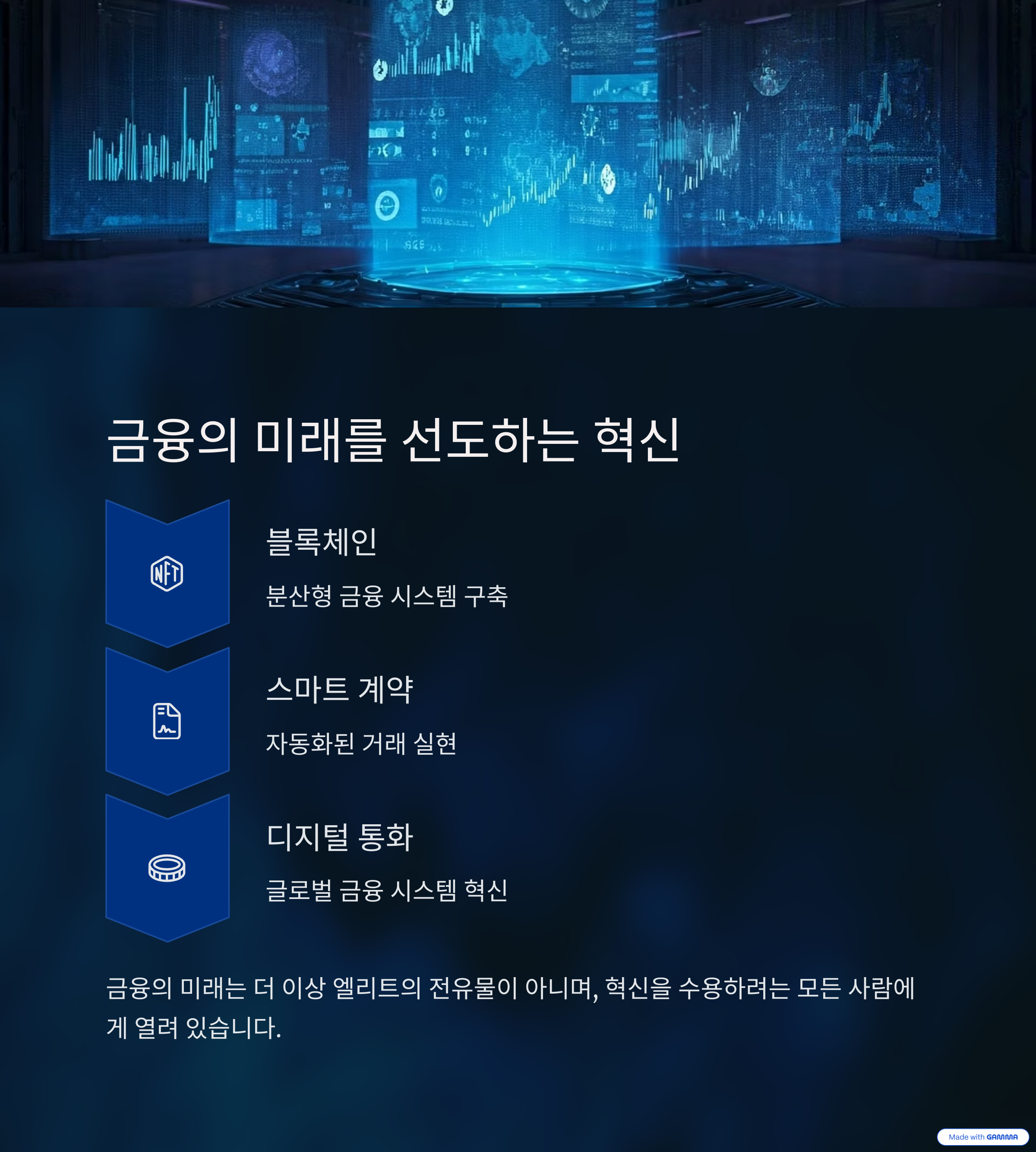 금융의 미래는 더 이상 엘리트의 전유물이 아니며, 혁신을 수용하려는 모든 사람에게 열려 있습니다.
