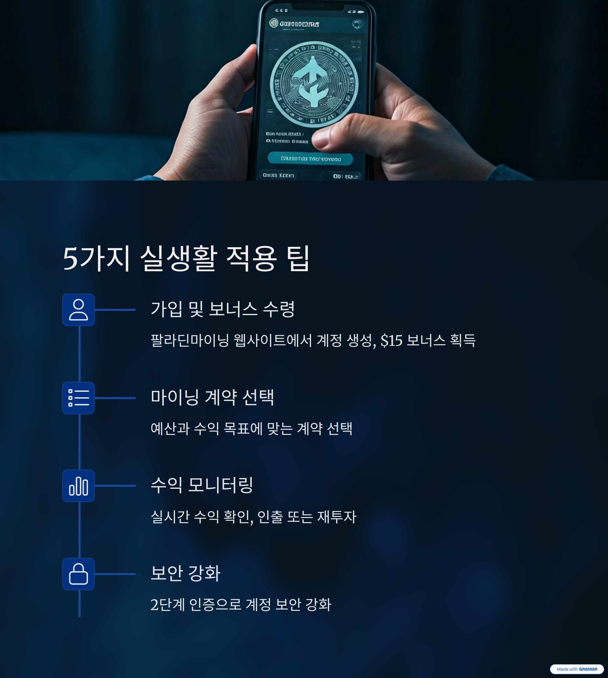 - 가입 및 보너스 수령: 팔라딘마이닝 웹사이트에서 계정을 생성하고 $15 보너스를 받으세요.