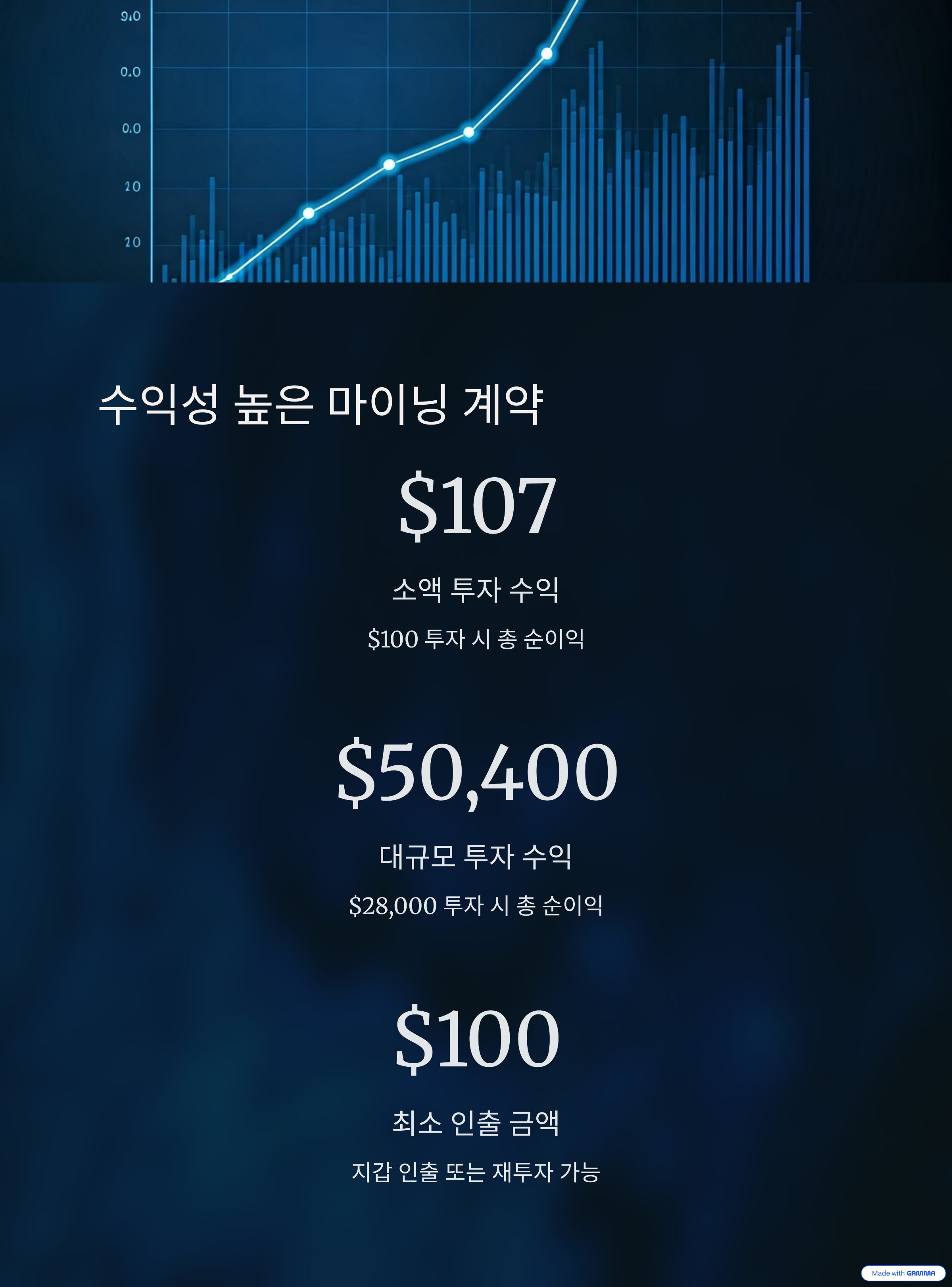 A3: $100부터 $28,000까지 다양한 투자 금액에 따른 마이닝 계약이 있으며, 각 계약은 예상 수익이 다릅니다.